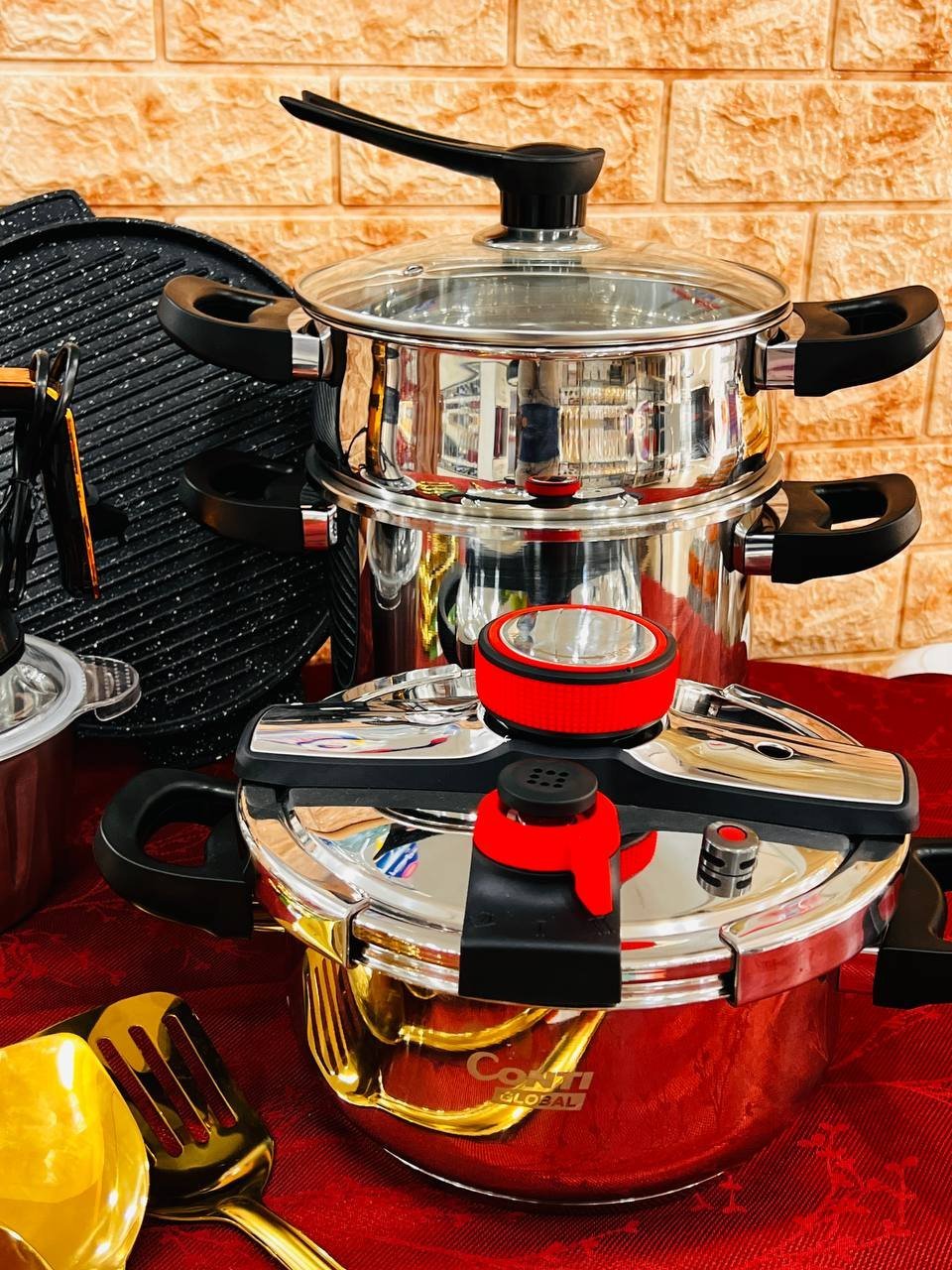 *طنجرة الطغظ 4 في 1:اللي راح تلقايها طنيجرة و كوكوت و كسكسيار و فريتوز في نفس الوقت فيها طنجرة العايلة و الضياف 7لترات و طنيجرة لعايلتك الصغيرة 4 لترات.